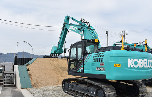 - ICT施工に対応したサービス研修や屋外ジョブサイトも完備。遠隔操作システムなどの最新技術に対応した設備も導入しています。