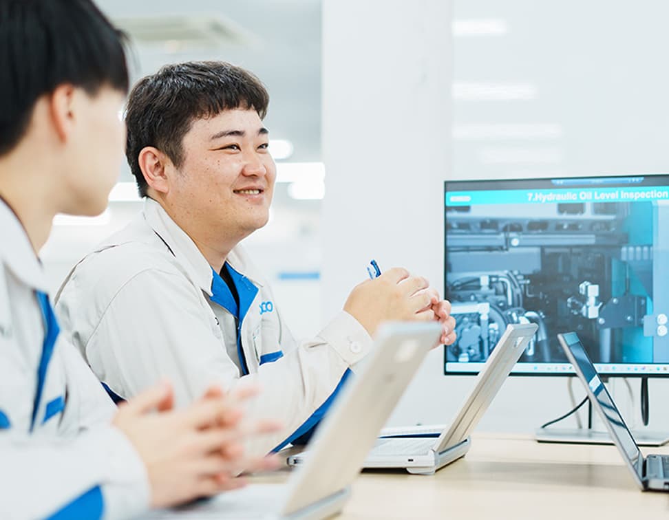 コベルコ建機はとても風通しがよく、立場関係なく自分の意見を言える雰囲気があります。研修制度はかなり充実しており、「勝手に覚えて」と突き放すこともありません。私自身、先輩に大変良くしていただいた経験があるので、後輩にもそれ以上に還元してあげたい気持ちがあり、こういった良い連鎖がコベルコ建機の職場環境を形成しているのだと思います。ぜひ、臆することなく挑戦してください!