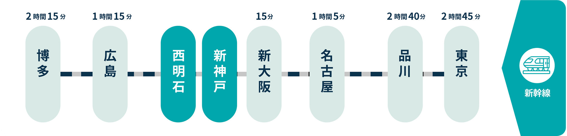 大久保事業所の最寄りとなるJR大久保駅は、隣の駅が新幹線の西明石駅なので、遠方へのアクセスも便利。神戸や姫路といった主要都市へどちらも電車で30分程度なので、アクセスも良好です。また、明石市内には「Tacoバス」という、100円で乗車できる市民バスもあるので、ちょっとした移動でも気軽に利用できます。