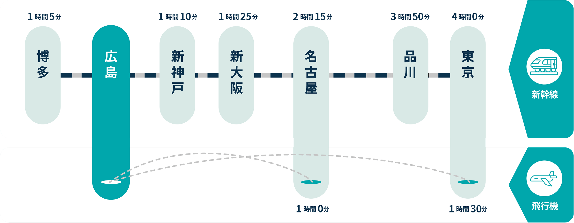 市内にはJR、私鉄、バスなどの交通網が充実しており、移動手段も豊富。広島の玄関口となるJR広島駅は、山陽新幹線のすべての列車の停車駅で、東京や大阪にもアクセス良好です。また、広島空港からは国内各地のほか中国やタイなどの海外路線も就航しているので、仕事やプライベートでも便利に利用できます。