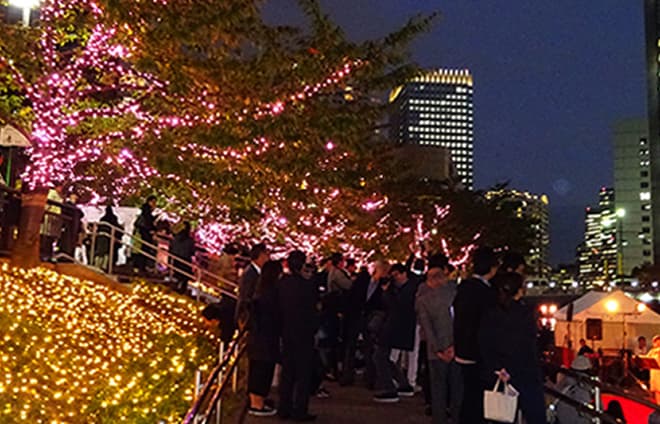 東京スカイツリーやお台場など、皆さんが知っている有名スポットは少ないですが、実は地元で人気のスポットがたくさん。その一つが、メディアにも取り上げられることが多くなった、目黒川のイルミネーションです。東京本社のすぐ横にある目黒川沿いを綺麗にライトアップするイベントで、冬の風物詩として、毎年多くの人で賑わっています。