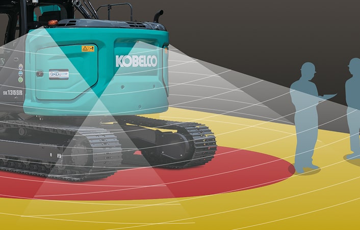 - コベルコ建機では安全を徹底的に追及してきました。後方確認カメラや周囲を俯瞰できるイーグルアイビュー。作業者に注意を喚起する旋回フラッシャー。「K-EYE PRO」は万一人や障害物を検知するとマシンが自動的に減速・停止します。そのほかにも、誤動作防止の乗降式ロックレバーやロータリーマルチレバーコントロールなど、最新技術を駆使して業界初となるさまざまな安全機能を装備してきました。