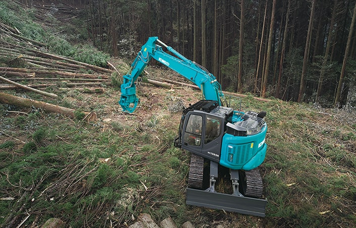 - 1970年代後半、建物解体機の「ニブラー」を業界に先駆けて世に送り出しました。時代のトレンドが消費から循環へと変化していくなかでビル解体機や自動車解体機などのリサイクル関連機器へと進出しました。さらに、林業の機械化にも取り組み、伐採や収材をおこなう機械を国産で初めて開発、多様な専用マシンをラインナップしています。こうした数々の技術は森林整備や地球温高防止など、環境問題の解決に貢献しています。